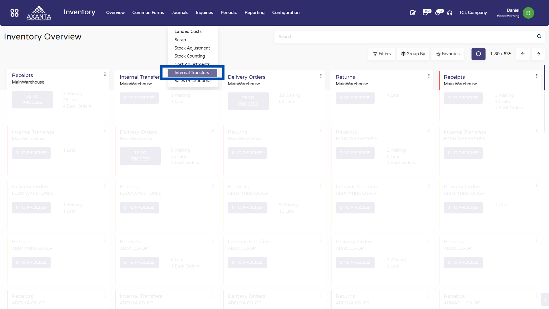 • Navigate to: Inventory → Internal Transfers